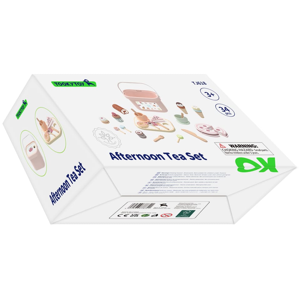 Witaj w słodkim świecie zabawy! Ten uroczy zestaw drewnianych deserów zamieni każdy dzień w prawdziwe przyjęcie herbaciane. Dzieci będą mogły kroić urocze drewniane torty, nakładać babeczki, ciasteczka i lody na drewnianą podstawkę, a także przenosić całą ucztę w estetycznym pudełku ze słodką grafiką. Drewniane akcesoria podzielone na części łączące się na rzepy sprawiają, że zabawy może być bez końca - a każda wizyta w słodkiej kawiarni to nowa przygoda rozwijająca wyobraźnię.