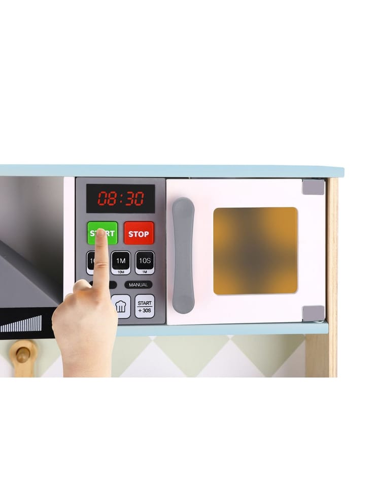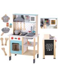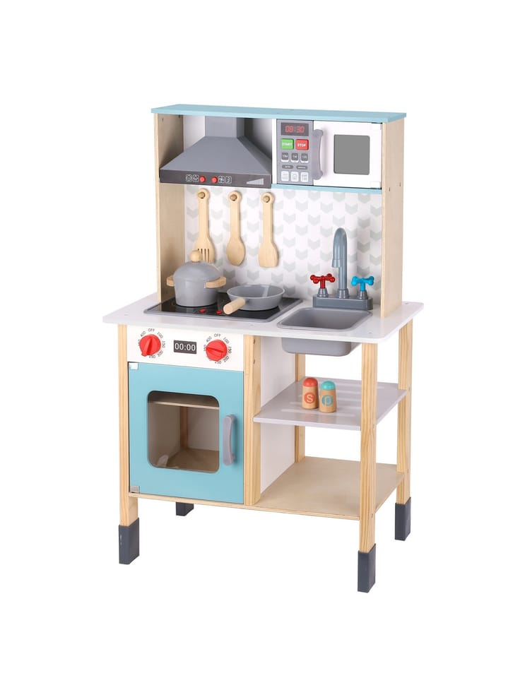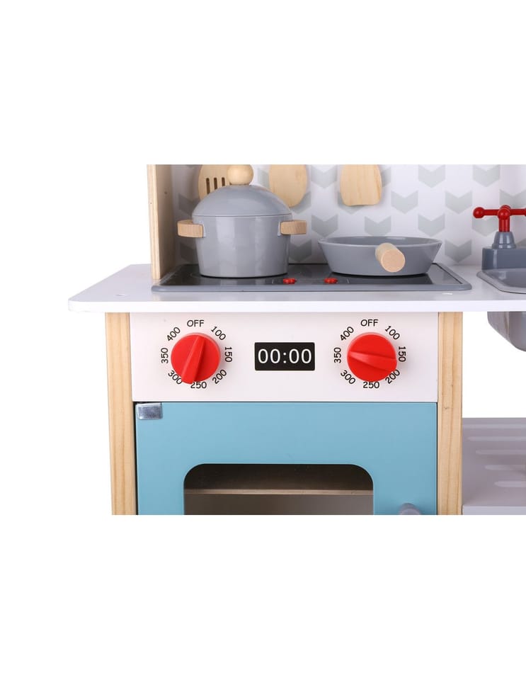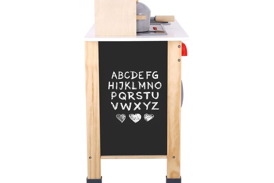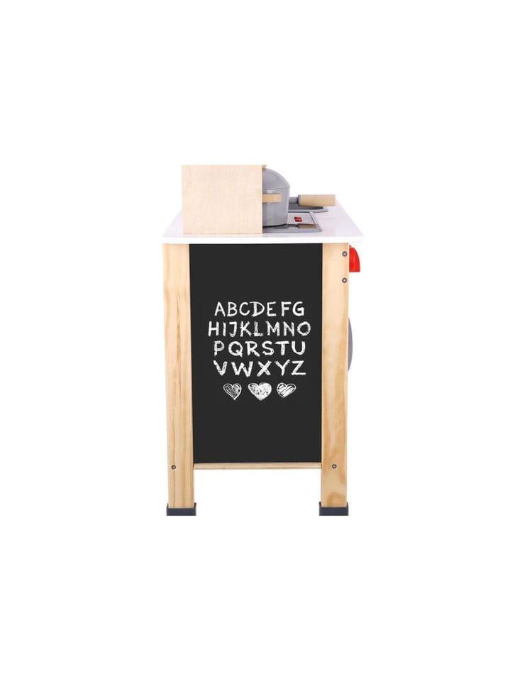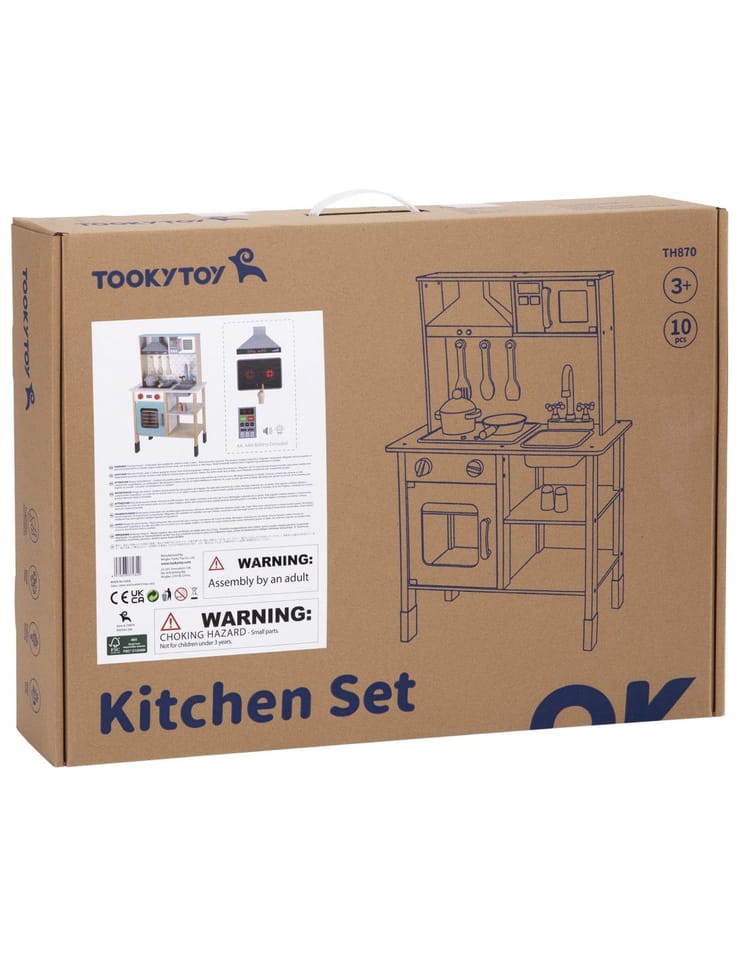 Przepiękna Kuchnia od marki TOOKY TOY to świetna propozycja dla dzieci które lubią wcielać w różne role osób dorosłych podpatrzonych w życiu codziennym. Zestaw zawiera wiele obszarów funkcjonalnych, takich jak zlew, kuchenka, szafki oraz wiele innych. Po lewej stronie znajduje się tablica, po której dzieci mogą pisać. Na kuchence natomiast można symulować gotowanie, zyskując niesamowite wrażenia kulinarne.