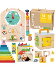 Pudełko edukacyjne firmy Tooky Toy przeznaczone jest dla maluszków w wieku od 3 lat. Zawiera 6 zabawek sensorycznych i dydaktycznych montessori, które wspierają zdrowy rozwój psychomotoryczny Twojego dziecka oraz stymulują jego zmysły: wzrok, dotyk i słuch. Rozwija również logiczne myślenie i koordynację ręka-oko. Jest też szczegółowy poradnik dla rodziców, dzięki któremu dowiesz się, kiedy wprowadzić zabawkę do zabawy swojego maluszka i jak się nią bawić. Pudełko edukacyjne Tooky Toy nadaje się na prezent dla maluszka.Pudełko zawiera 6 zabawek dydaktycznych od 3 lat w jednym opakowaniu: