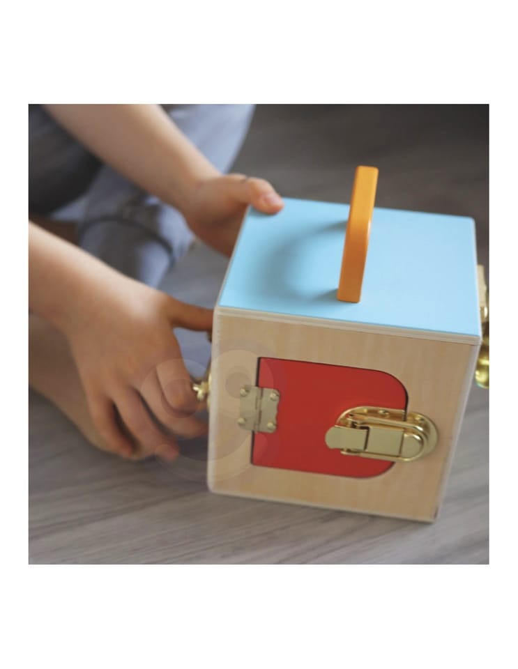 - - skrzynka z 3 różnymi zamkami i kolorami,