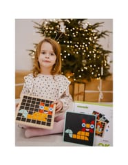 Drewniana mozaika od Tooky Toy to wciągająca układanka w stylu Montessori, która zachęca do twórczej zabawy. Zestaw składający się z aż 97 elementów pozwala na tworzenie nieskończonej liczby barwnych kompozycji. Dziecko może korzystać z gotowych kart ze wzorami lub polegać na własnej wyobraźni. Klocki pomagają w nauce kolorów i kształtów, stymulując jednocześnie wyobraźnię przestrzenną. Całość wykonana jest z wysokiej jakości materiałów, bez ostrych krawędzi, dzięki czemu jest całkowicie bezpieczna dla środowiska i najmłodszych.