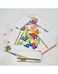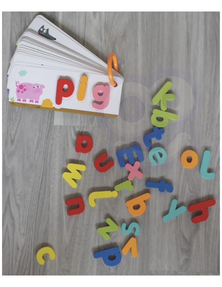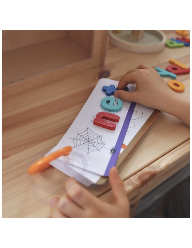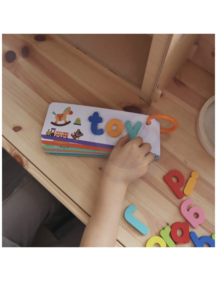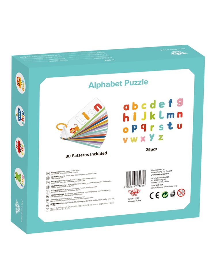 Puzzle Alfabet marki Tooky Toy to prawdziwa przygoda z nauką liter dla najmłodszych! Ten wyjątkowy zestaw zamienia pierwszą edukację językową w radosną zabawę pełną kolorów, kształtów i prostych słówek. Dziecko odkrywa tajemnice alfabetu poprzez układanie kolorowych literek w odpowiednie miejsca na 30 ilustrowanych kartach, tworząc nazwy zwierzątek i przedmiotów takich jak "bear", "lion", "owl" czy "star". Karty połączone wygodną obręczą można zabrać ze sobą w każdą podróż, a dzięki przerysowanym literkom dziecko samodzielnie sprawdza, czy dobrze dobrało elementy.