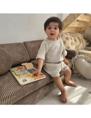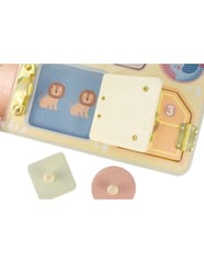 Tablica manipulacyjna TOOKY TOY to prawdziwe centrum odkrywania dla małych rączek i ciekawskich umysłów. Każdy element zaprasza dziecko do działania – otwierania, przekręcania, dopasowywania i obserwowania efektów. Zamki skrywające wesołe zwierzątka, kolorowe zębatki oraz zegar z ruchomymi wskazówkami sprawiają, że zabawa staje się fascynującą przygodą pełną nauki. To idealna propozycja dla rodziców, którzy chcą połączyć radość zabawy z wartościowym rozwojem dziecka.