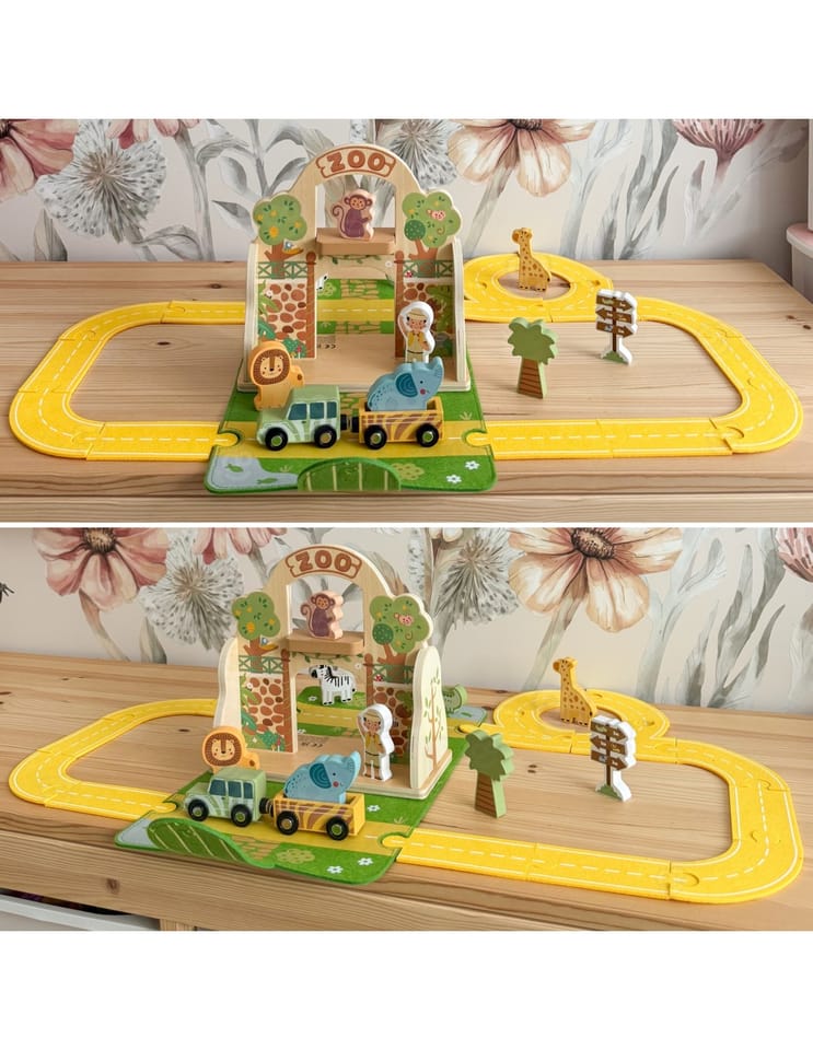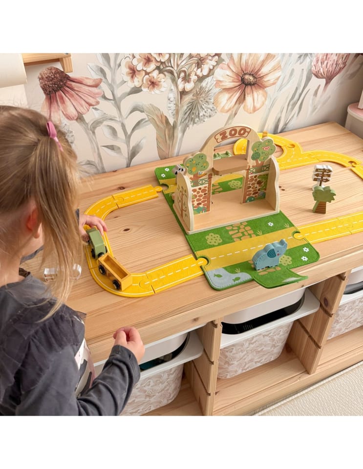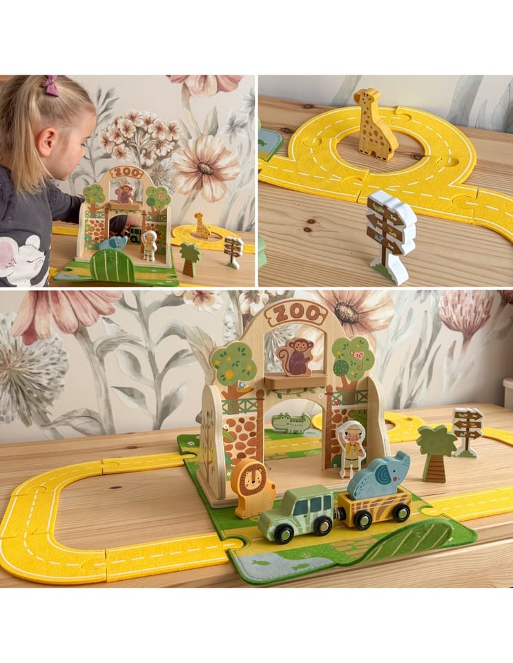 Wyobraź sobie kompletne, urocze zoo zamknięte w eleganckiej, filcowej torbie – gotowe do rozłożenia w każdym miejscu! Mini zoo marki Tooky Toy to nie tylko zabawka, to cały uniwersum przygód, które Twoje dziecko może stworzyć w domu, czy na wakacjach. Kolorowy zestaw z drewnianym wejściem w kształcie bramy zoo, kolorowe zwierzątka, pojazdy terenowe i elastyczne elementy torów zaprasza do nieskończonych możliwości zabawy. Każdy element został zaprojektowany z dbałością o szczegóły – od wesołej karetki, przez sygnalizację świetlną, aż po urocze drzewko. To miasto, które nigdy nie śpi i zawsze czeka na nowe historie!