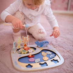 - - zestaw zawiera 22 elementy: drewnianą planszę, morskie zwierzątka oraz dwie wędki z magnesami