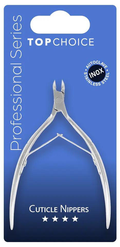 Cążki do skórek wykonane ze stali nierdzewnej z błyszczącą powłoką.