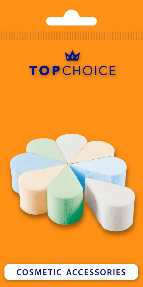Zestaw gąbek (8 szt.) w kształcie łezki. Gąbka umożliwia równomierne rozprowadzenie kosmetyku na twarzy, szyi oraz dekolcie.