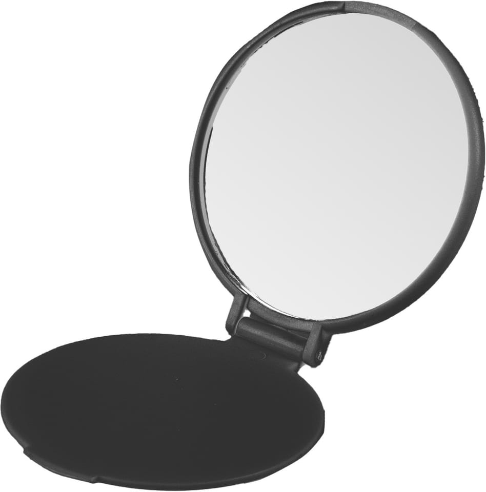 Eleganckie lusterko kosmetyczne do torebki, dwustronne, otwierane. Posiada zawias pozwalający na ustalenie kąta lusterka. Jedna tafla powiększająca
