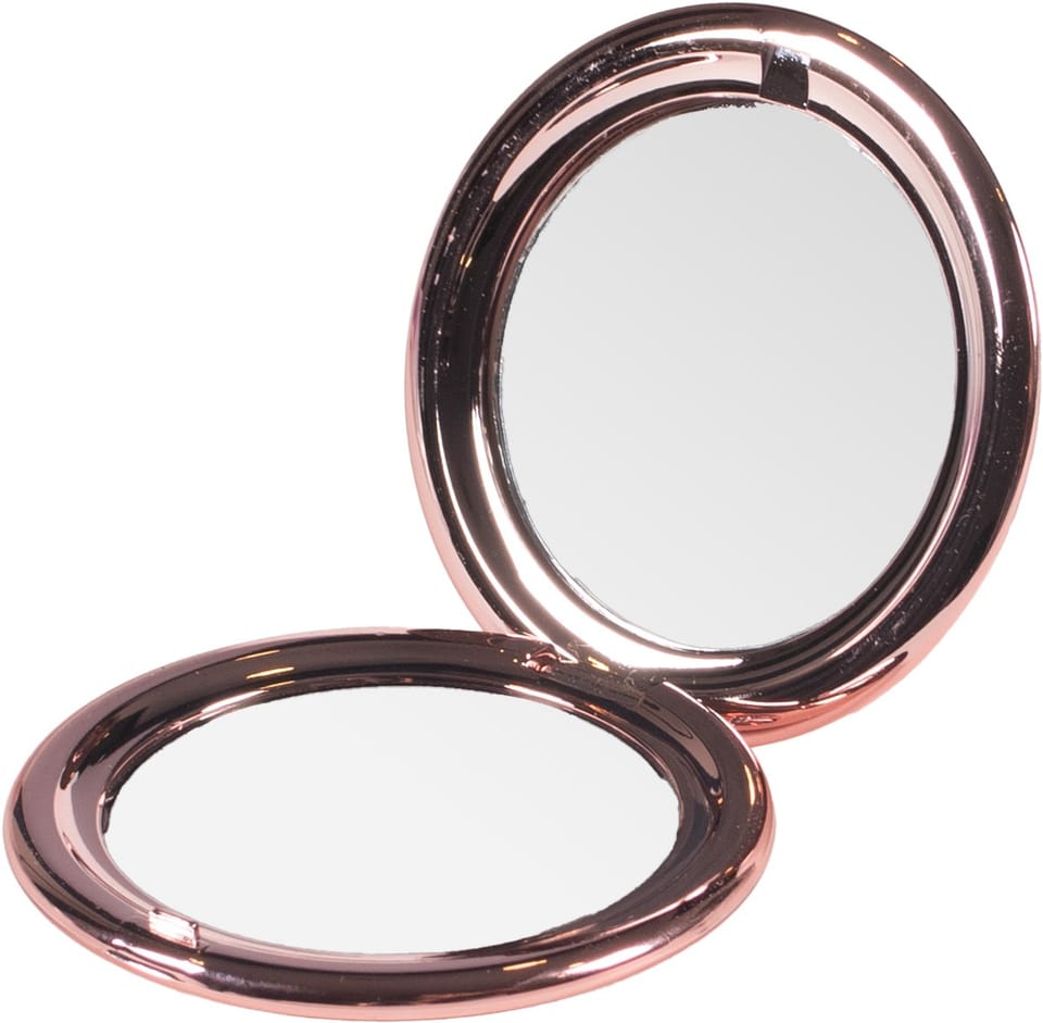 Eleganckie lusterko kosmetyczne do torebki, dwustronne, otwierane. Posiada zawias pozwalający na ustalenie kąta lusterka. Jedna tafla powiększająca