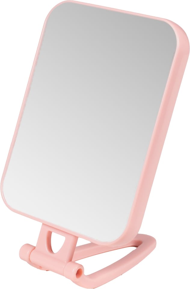 Lusterko kosmetyczne prostokątne o wymiarach 11,5cm X 15cm, dwustronne. Stojące z regulacją kąta nachylenia. Składane i przenośne. Wykonane z wysokiej jakości tworzywa ABS. Kolor: Różowy pastelowy