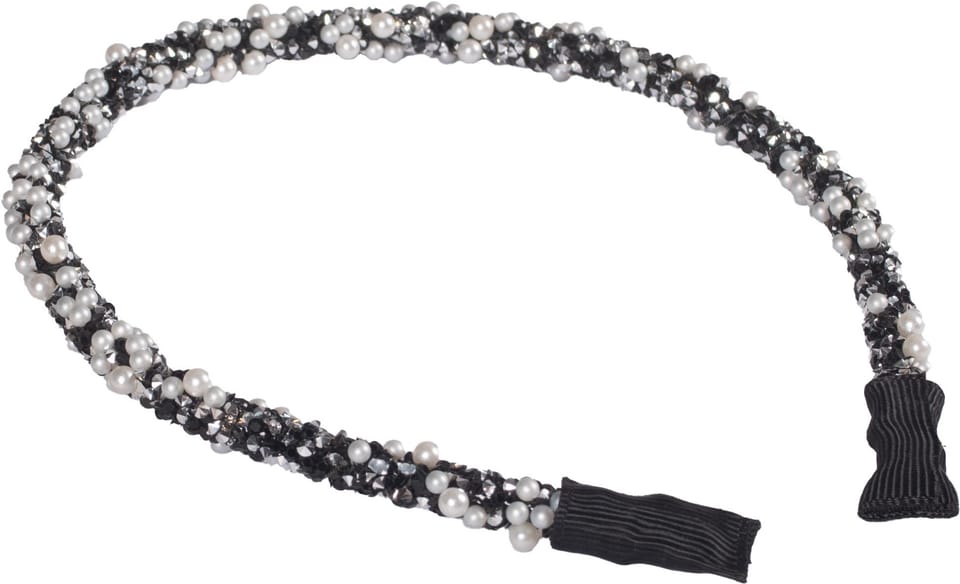 Ozdobna, błyszcząca opaska do włosów wykonana ze szlifowanych kryształków z dodatkiem perełek. Dostępna w kolorze czarnym i srebrnym