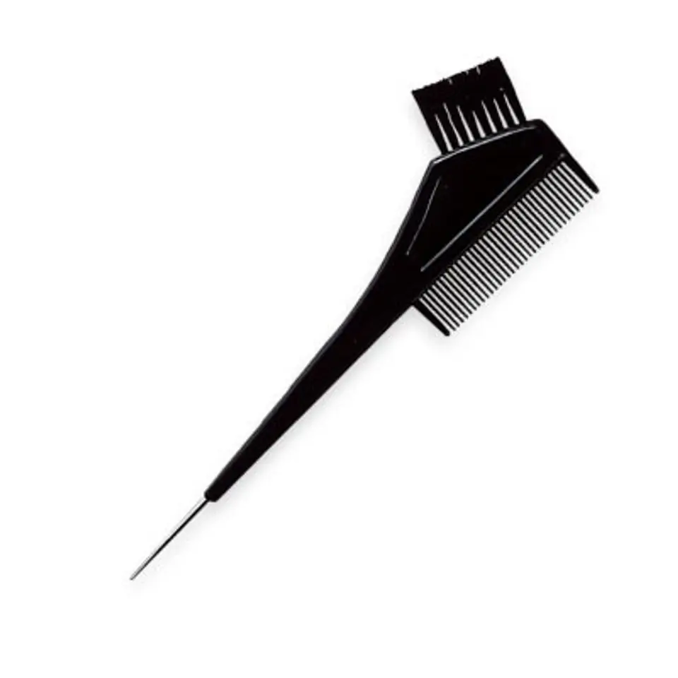 Pędzel do farby czarny z grzebieniem i haczykiem. Umożliwia równomierne nałożenie farby na włosy.