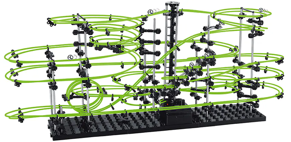 Po złożeniu, przygotuj się na długie godziny rozrywki obserwując jak metalowe kulki ślizgają się i zderzają na twoim własnym torze. Korkociągowa winda pomoże wznieść metalowe kulki na szczyt twojej budowli, a gdzie kulki pojadą dalej - zależy wyłącznie od twojej wyobraźni. Zbuduj wielki tor, wystrzel kulki na szczyt konstrukcji i oglądaj jak jedna po drugiej dotrą z powrotem do windy pokonując przy okazji zawiłe zakręty i pętle. Widowiskowo zademonstruj podstawowe prawa fizyki swoim znajomym i rodzinie.