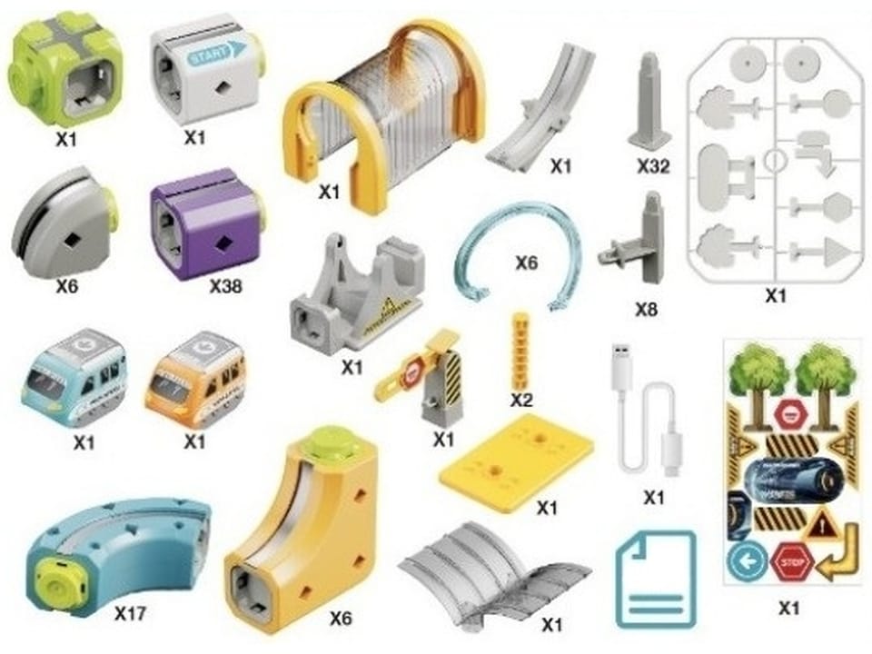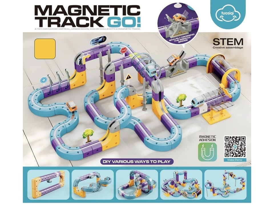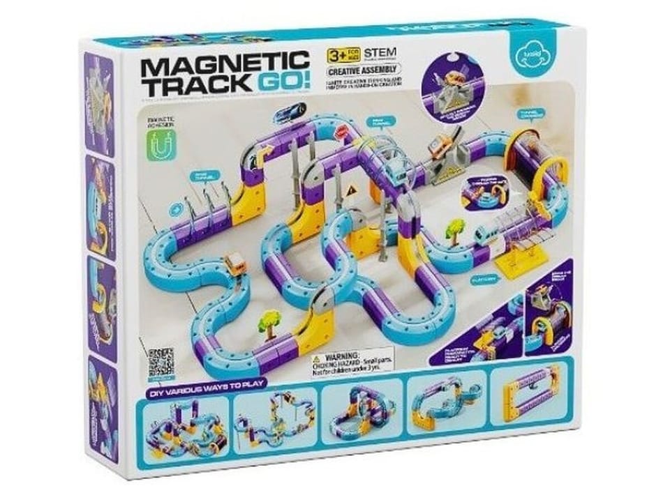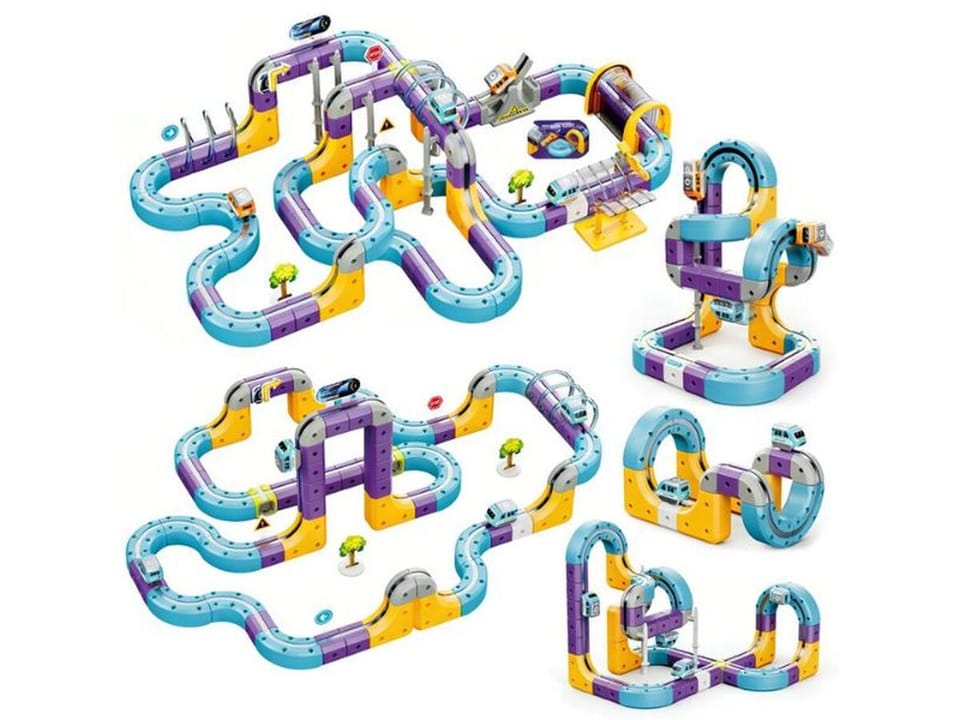 Tor Magnetyczny Zjazd samochodowy Kolejka Zjeżdżalnia Pociąg Klocki Konstrukcyjne 128 el.