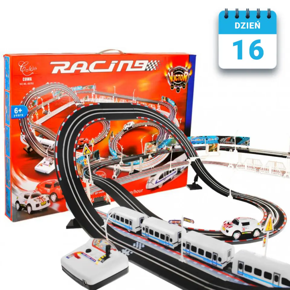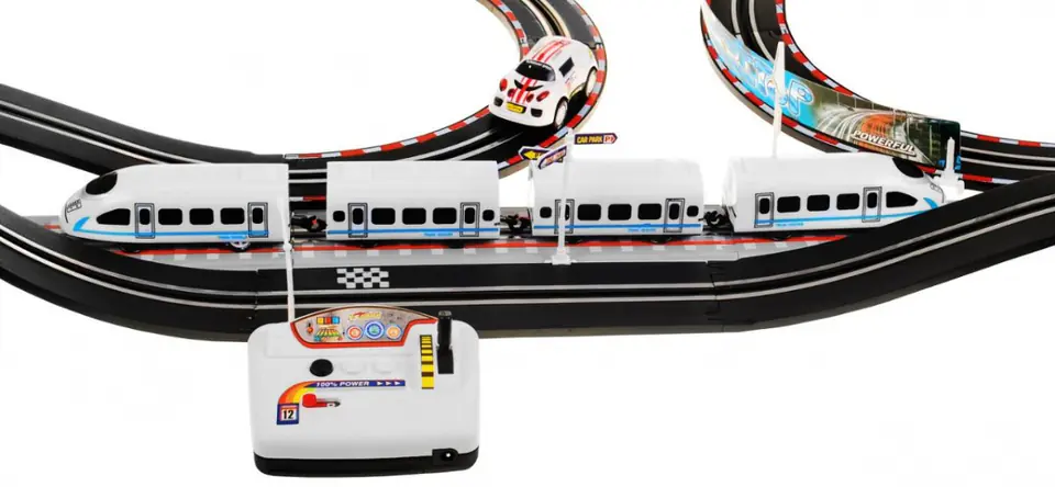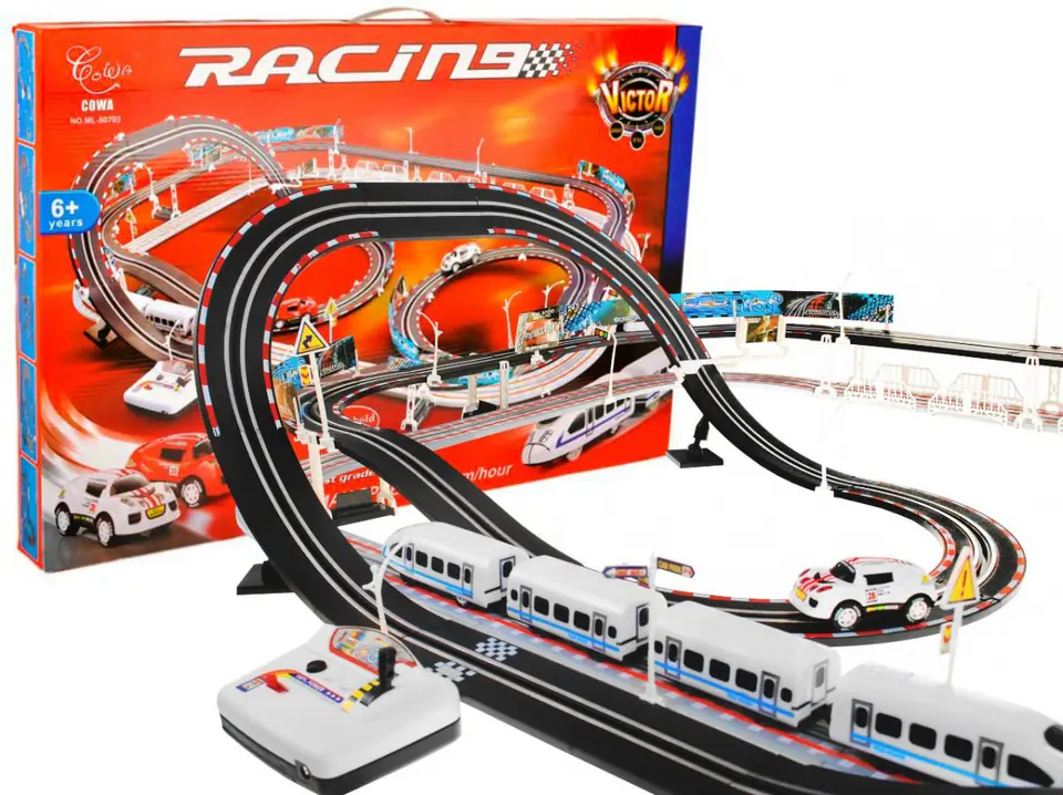 Tor wyścigowy Kolejka elektryczna 2w1 dla dzieci 6+ Zdalnie sterowane + Lokomotywy + Wagony + Autko