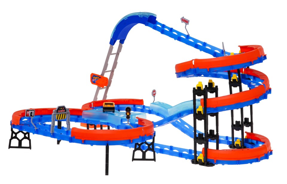 | Ekstremalny, wielopoziomowy tor wyścigowy z drabinką, ostrymi zakrętami, pętlami i autkiem to propozycja dla dzieci od 3-go roku życia. Zestaw składa się z 90 elementów do samodzielnego montażu. Na torze znajdują się odcinki proste, ostre zakręty z barierkami zabezpieczającymi przed wypadaniem pojazdu z trasy i drabinka. Autko zasilane jest akumulatorem typu 3,7 V, akumulator znajduje się w zestawie. Na spodzie autko jest podświetlane. | |