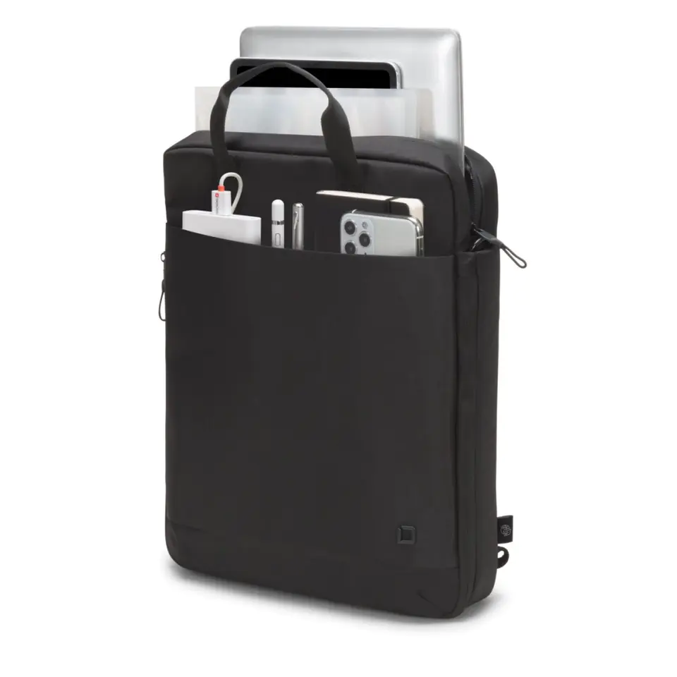 Torba Eco Tote Bag MOTION zapewnia idealną ochronę laptopów o przekątnej od 13 do 15,6" dzięki wyściółce z pianki o wysokiej gęstości (HDF). Kieszeń wsuwana zapewnia niezawodną ochronę tabletów o przekątnej do 12,9". Łatwo przekształcisz torbę na ramię w plecak dzięki chowanym paskom i zdejmowanemu, wyściełanemu paskowi na ramię. Przestronna część główna jest podzielona tak, aby dokumenty i akcesoria można było przechowywać oddzielnie. Aby uzyskać jeszcze więcej miejsca do przechowywania, komorę główną można rozszerzyć za pomocą zamka błyskawicznego. Przednia kieszeń ma praktyczne przegródki, dzięki którym możesz uporządkować mniejsze przedmioty, takie jak smartfon, długopisy czy ładowarki. Torba wykonana jest z wodoodpornego materiału, który chroni zawartość nawet w deszczowe dni.
