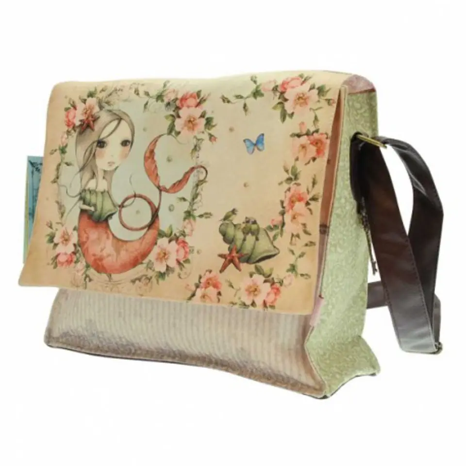 Torba na ramię (z połyskiem) - Mirabelle - Mergirl Stylowa i klasyczna torba na ramię z kolekcji Mirabelle. Kieszeń główna wykończona materiałem z nadrukiem i zabezpieczona zapięciem na rzep. W środku także mała kieszeń z suwakiem. Torba posiada pasek z ciekawym obszyciem, przypominający skórzany. Materiał: na zewnątrz: 100% poliester, wyściółka: 100% poliester, wykończenie i pasek: 100% poliuretan. Przeznaczony dla dzieci powyżej 3 roku życia. 394EC01
