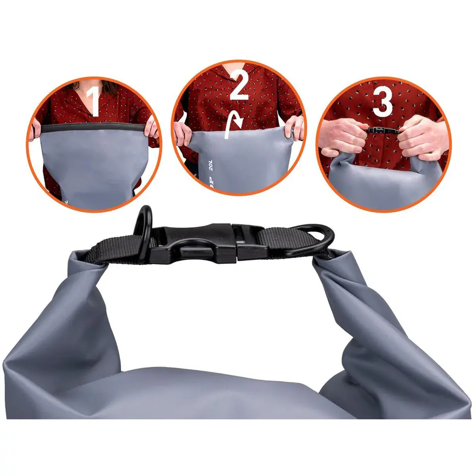 Worek jest wykonany z wodoodpornego materiału, odpornego na promieniowanie UV. Posiada prosty i niezawodny system zamykania poprzez kilkukrotne rolowanie i zamknięcie klamrowe. Dzięki odpinanemu, regulowanemu paskowi zamienisz torbę w plecak i wszędzie go ze sobą zabierzesz. Idealny na letnie wypady nad jezioro, morze a przede wszystkim spływy kajakowe czy pływanie na dmuchanej desce SUP.