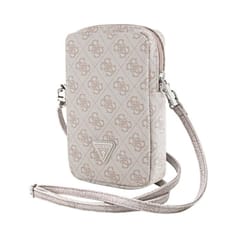 Torebka na telefon z kolekcji Zip 4G Traingle charakteryzuje się złotym logo 4G nadrukowanym na luksusowej fakturze skóry Saffiano- materiału niebywale wytrzymałegi, odpornego na uszkodzenia i różnego typu zniekształcenia. Charakterystyczny motyw jest bardzo ozdobny, emanuje luksusem i wyrafinowaniem. Złote okucia dodają temu akcesorium ekskluzywnego charakteru.