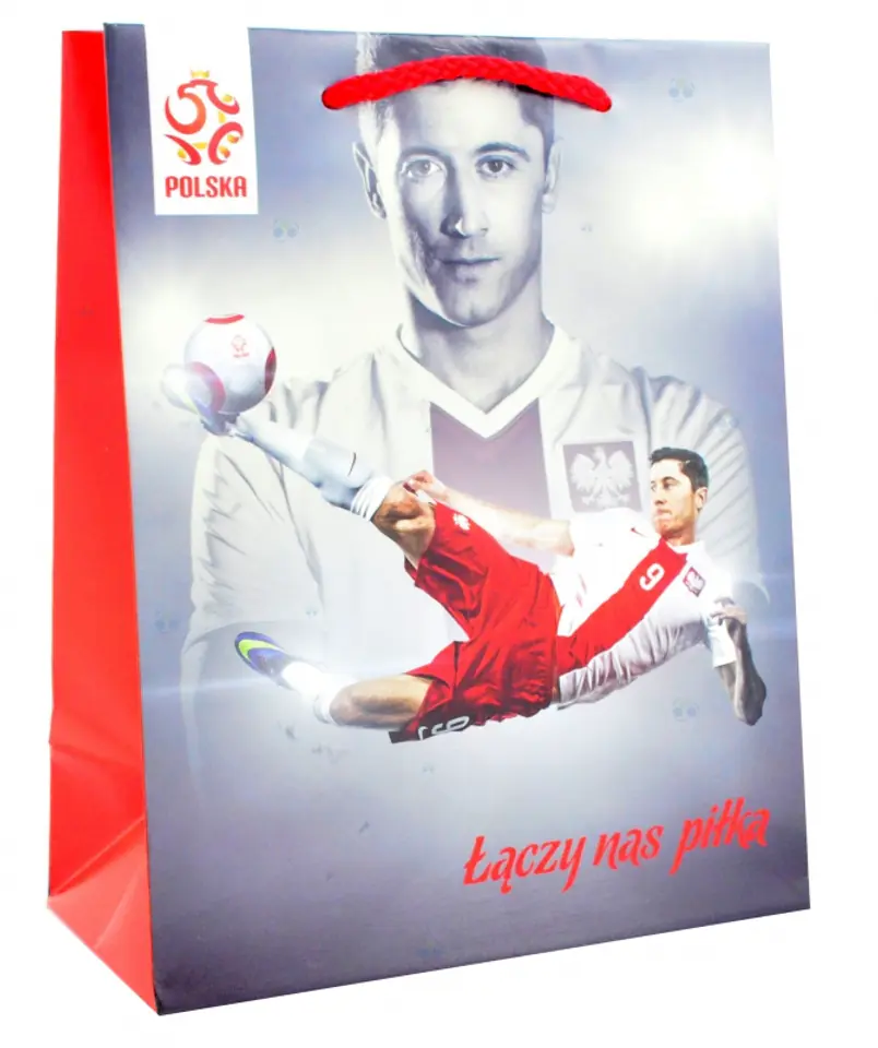 Torebka upominkowa mała z wizerunkami piłkarzy reprezentacji Polski - m.in. Lewandowskiego, Milika i Grosickiego