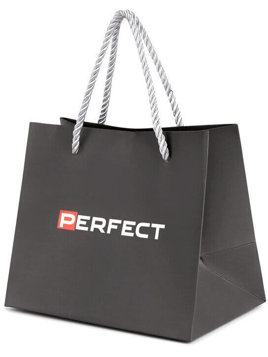 Torebka prezentowa Perfect w kolorze szarym, wykonana z utwardzanego papieru. Logo producenta na torebce w kolorze białym.