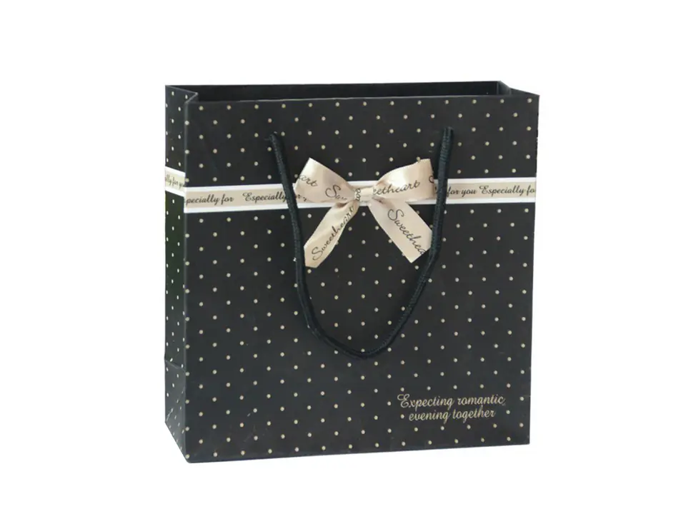 Elegancka, średnia torebka na prezent. Uniwersalna, z delikatnymi zdobieniami. Idealna na każdą okazję.