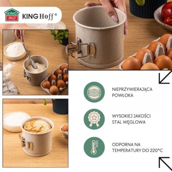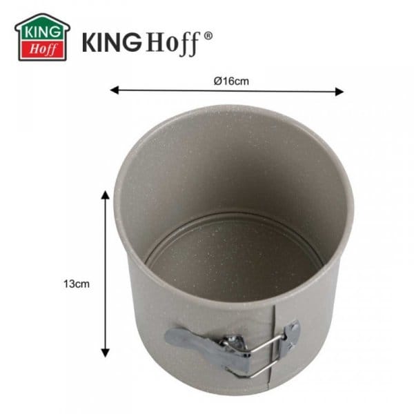 KingHoff KH-1980 to wysoka, solidna forma do pieczenia tortów o średnicy 16 cm i imponującej wysokości 13 cm. Zaprojektowana dla miłośników efektownych, wysokich wypieków, świetnie sprawdzi się zarówno w domowej kuchni, jak i w profesjonalnej cukierni. Wykonana ze stali węglowej i pokryta powłoką nieprzywierającą MARBLE, gwarantuje idealne wypieki bez przywierania i bez stresu przy wyjmowaniu ciasta.