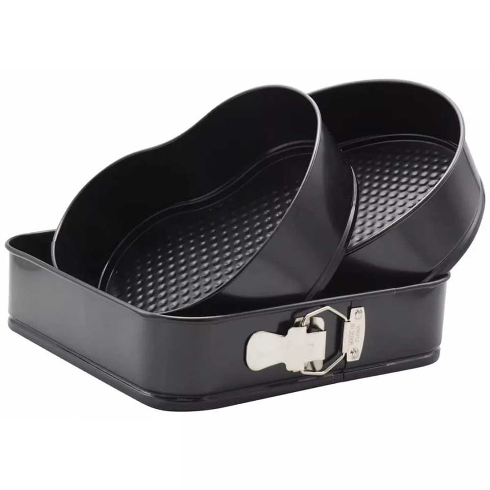 Formy pokryte powłoką nieprzywieralną, która ułatwia pieczenie Łatwe do umycia, zalecane mycie ręczne W zestawie tortownice w 3 kszztałtach: okrągła, kwadratowa, w kształcie serca. Każda tortownica wyposażona jest w rozpinany rant, który umożliwia łatwe wyjmowanie ciasta bez ryzyka uszkodzenia jego kształtu. Mechanizm zamykający jest prosty i bezpieczny w użyciu, co zapewnia wygodę, nawet przy wypiekach, które wymagają szczególnej ostrożności podczas wyjmowania, takich jak serniki, biszkopty czy ciasta warstwowe. Formy te mają powierzchnię zapobiegającą przywieraniu, dzięki czemu ciasto nie przykleja się do boków i łatwo odchodzi od formy, co dodatkowo ułatwia mycie. Tortownice są uniwersalne – można używać ich do pieczenia różnego rodzaju ciast, tortów i deserów, co czyni je praktycznym dodatkiem do kuchni każdego entuzjasty wypieków. Należy pamiętać o nie stosowaniu ostrych przyborów aby zapobiec zarysowaniom na powłoce nieprzywieralnej.