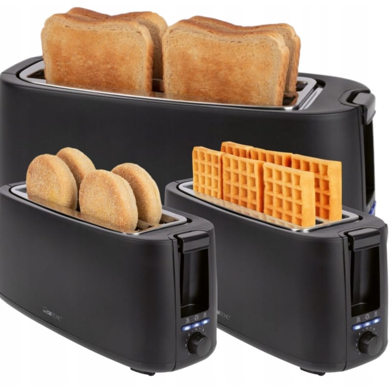NAJWYŻSZEJ JAKOŚCITOSTER - SANDWICHDO KANAPEK I TOSTÓWDUŻY - NA 4 TOSTYRENOMOWANEJ FIRMY CLATRONICMODEL: TA 3802Zacznij każdy dzień od idealnie chrupiącego tostaNasz nowoczesny toster to połączenie funkcjonalności i elegancji, które z pewnością odmieni Twoje poranki.Dzięki intuicyjnej obsłudze i regulacji stopnia opieczenia, masz pełną kontrolę nad tym, jak wypieczone będą Twoje tosty – niezależnie, czy lubisz je delikatnie chrupiące, czy bardziej przypieczone.Automatyczny toster na 4 kromki z demontowalną przystawką do podgrzewania bułek. Toster posiada funkcję podgrzewania, rozmrażania, szybkiego wyłączenia oraz regulację stopnia wypieczenia.Clatronic TA 3802 to automatyczny toster na 4 kromki z szerokim slotem o mocy max aż 1400 W, który posiada funkcję podgrzewania, rozmrażania i szybkiego wyłączenia. Urządzenie wyposażony jest w regulację stopnia wypieczenia. Toster posiada również demontowalną przystawkę do podgrzewania bułek. Nienagrzewająca obudowa typy "Cool-Touch" gwarantuje bezpieczne użytkowanie. Toster jest łatwy w utrzymaniu czystości i przechowywaniu - posiada wbudowaną tackę na okruchy oraz miejsce na zwinięty przewód.Najważniejsze cechy tostera Clatronic TA 3802:Kolor: czarnyToster na 4 kromkiObudowa „Cool-Touch” nie nagrzewa sięDemontowalna przystawka na bułkiFunkcja podgrzewania, rozmrażania, szybkiego wyłączeniaRegulowany stopień wypieczenia3 kontrolki LEDWyłączenie automatyczne i ręczneSzufladka na okruchyWnęka na przewódOznaczenia CE - spełnia wszystkie restrykcyjne normy UEZasilanie: 220-240 V~, 50/60 Hz, 1200-1400 WDlaczego warto kupić toster Clatronic TATosty dla całej rodzinyUrządzenie posiada super szeroki slot - pozwala to na przygotowanie aż 4 tostów na raz!WielofunkcyjnyPosiada funkcję podgrzewania oraz rozmrażaniaGrzanki takie jakie lubiszRegulacja stopnia wypieczeniaŁatwy w czyszczeniu oraz przechowywaniuWbudowana tacka na okruchy oraz miejsce na zwinięty przewódBezpiecznyObudowa typy "Cool-Touch" gwarantuje bezpieczne użytkowanieWymiary tostera:Wymiary (ok. szer. x wys. x gł.) i wagaUrządzenie: 150 x 175 x 380 mm; 0.99 kgOpakowanie: 165 x 212 x 417 mm; 1.3 kgPrzygotuj pyszne śniadania bez zbędnego wysiłku – szybki, prosty i wygodny sposób na chrupiące tosty każdego dnia!Nie czekaj, sprawdź naszą ofertę i przekonaj się, jak przyjemne mogą być poranki z idealnie opieczonym chlebem.Produkt został odznaczony certyfikatem FOCUS - TEST DEUTSCHLANDS BESTECertyfikat TEST DEUTSCHLANDS BESTE został przyznany na podstawie badań przeprowadzonych przez „Germanys best household electronics”. W ramach testu porównane zostały produkty z ponad 20 000 marek z 274 segmentów rynkowych.Celem wyróżnienia „Focus” jest wskazywanie produktów cieszących się największym uznaniem konsumentów. Certyfikat przyznany jest na podstawie badań niemieckiego rynku i potwierdza wysoką jakość produktów a także świadczy o dużym zaufaniu konsumentów i renomie marki.slimtex