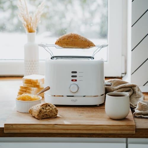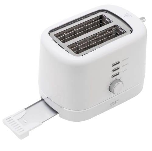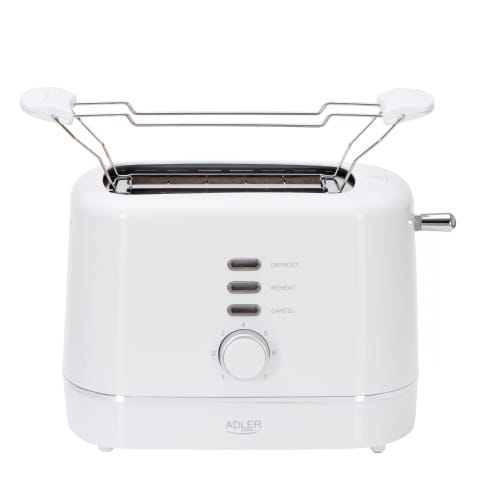 Toster z rusztem do bułek7 poziomów opiekania3 funkcje:- STOP- REHEAT - podgrzewanie- DEFROST – rozmrażanieRuszt do podgrzewania bułekAutomatyczne wyłączanieFunkcja automatycznego wysuwania tostówWyjmowana tacka na okruchyAntypoślizgowe nóżkiWbudowany schowek na przewód Długość przewodu zasilającego: 70cmWielkość otworu na kromki: 13,0x12,0x3,0cmWymiary produktu: 25.5x19.0x17,0cmKolor: białyTyp wtyczki: E/FMoc nom. 720WMoc max 850WZasilanie 220-240V ~ 50-60Hz