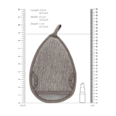 Rękawica posiada dwie funkcjonalne strony: jedną o aksamitnie gładkiej powierzchni, idealną do delikatnego masażu oraz codziennego mycia, oraz drugą z naturalnych włokien konopnych i lnu, przeznaczoną do efektywnego złuszczania martwego naskorka. Dzięki dodatkowemu zastosowaniu węgla drzewnego, rękawica skutecznie pomaga w oczyszczaniu porow, usuwaniu zanieczyszczeń oraz nadmiaru sebum ze skory.