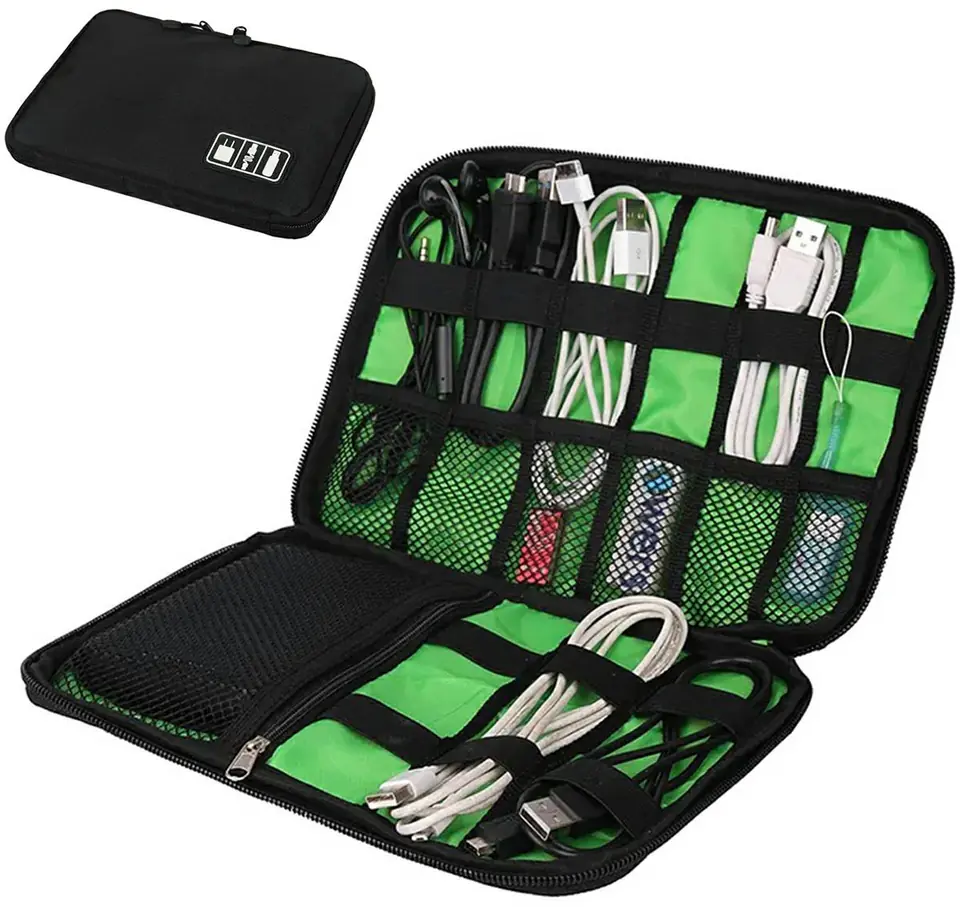 Wysokiej jakości organizer na kable, przewody, karty pamięci i wszelkie inne akcesoria do urządzeń elektronicznych! Uporządkuj i zorganizuj drobną elektronikę, nośniki danych oraz przewody w jednym, estetycznym etui które możesz wszędzie zabrać ze sobą!