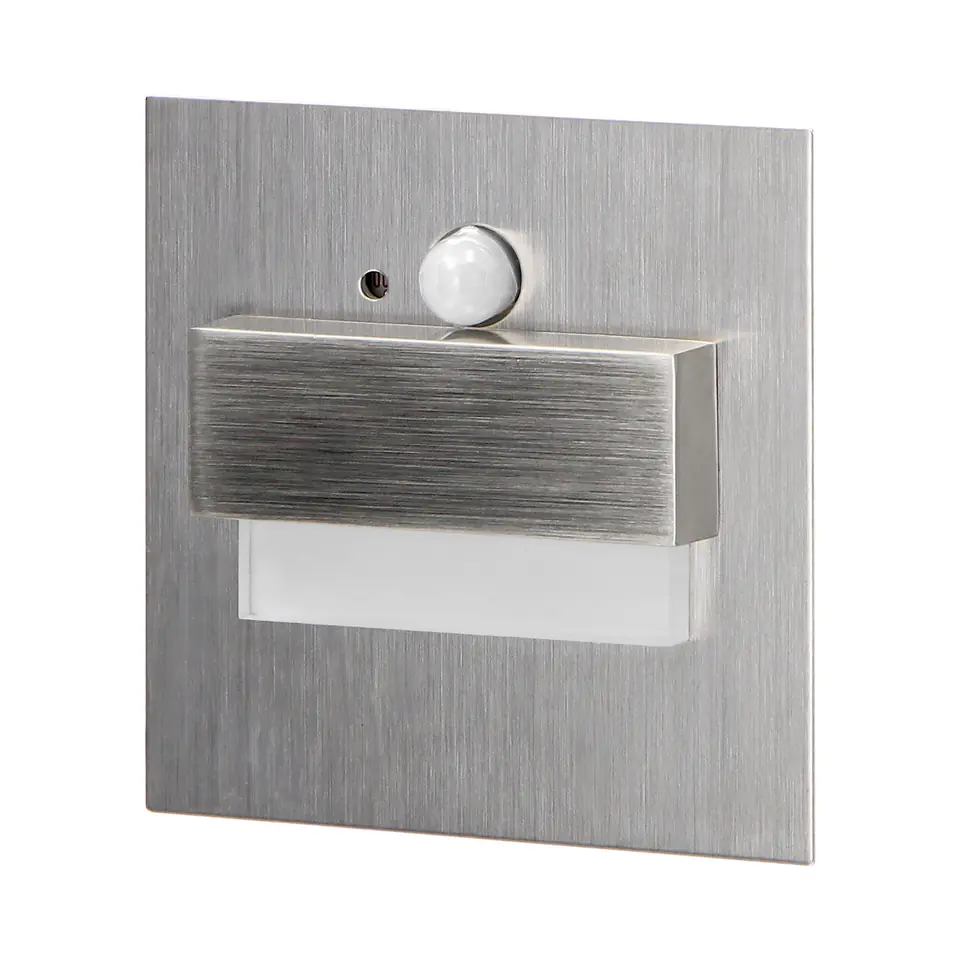 TRACO LED 1,5W, oprawa schodowa podtynkowa, 12VDC, 30lm, 4000K, satyna, czujnik ruchu i zmierzchu