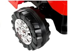 Czerwona koparka ZP1005 na akumulatorWiększość maluchów w dzieciństwie przechodzi fascynację różnego rodzaju pojazdami — jedni uwielbiają motory, inny samochody wyścigowe czy pojazdy budowlane. Mamy coś dla każdego z nich! Prezentujemy czerwoną koparkę z ruchomą łyżką, która z pewnością wywoła uśmiech na twarzy dziecka. Koparka ta posiada akumulator oraz silniki, dzięki czemu przeniesie malucha w zupełnie inny wymiar zabawy.Dziecięcy traktor ZP1005 w kolorze czerwonym wygląda dokładnie tak, jak jego pełnowymiarowy odpowiednik — z tą różnicą, że przeznaczony jest dla wszystkich kilkulatków. W jego konstrukcji znajduje się między innymi czarny fotel o wymiarach 25 cm x 18 cm, ruchoma, pojemna łyżka o szerokości 37,5 cm, którą obsługuje się manualnie za pomocą dwóch drążków, a także imitacja oświetlenia na pałąku znajdującym się nad siedzeniem czy charakterystyczne detale w połyskującym, srebrnym kolorze w formie tłoka, osłony chłodnicy czy kołpaków. Całość ozdobiona jest typowymi dla maszyn rolniczych i budowlanych naklejkami z motywem żółto-czarnych pasów ostrzegawczych, a także napisem „POWER”, podkreślających siłę i moc koparki ZP1005.Wewnątrz maszyny dla malucha umieszczono obrotową kierownicę z klaksonem i przyciskiem aktywującym energiczne melodie, której wielkość dostosowano do rączek małych dzieci, przycisk START/STOP, obrotowy regulator poziomu głośności pracy silnika, a także drążek do zmiany kierunku jazdy (przód, stop, tył) oraz pedał gazu. Ciekawym dodatkiem jest czarny krążek umieszczony w przedniej części koparki ZP1005, który mieni się wszystkimi kolorami tęczy dzięki zastosowaniu w jego budowie światełek LED, a także wejście na mini jack, pozwalające na podłączenie odtwarzacza MP3 do autka.Czerwony traktor ZP1005 dla dzieci został wykonany z atestowanego, trwałego materiału, który pozwoli maluchowi na częste zabawy. Jego konstrukcja oparta jest na szerokich, bieżnikowanych kołach z plastiku, na których znajduje się specjalna opaska. Dzięki niej pojazd nie wytwarza dużego hałasu podczas jazdy, a ponadto poradzi sobie — jak to maszyna do zadań specjalnych — na nawierzchni różnego typu. Prędkość, jaką może osiągnąć koparka dla kilkulatków, mieści się w granicach od 3 do 5 km/h, co jest gwarancją rozrywki na najwyższym poziomie. Obsługa pojazdu jest bardzo prosta — wystarczy, że mały kierowca po wygodnym usadowieniu się na fotelu wciśnie czerwony guzik startu, a swoją nóżkę ustawi na pedale gazu. Po jego dociśnięciu czerwony traktor na akumulator ruszy przed siebie — zabawa gwarantowana.Jeśli maluch natrafi na górkę usypaną z piasku, którą chciałby przenieść na swój teren budowy, nie ma żadnych przeszkód — by podnieść lub opuścić ramię, należy użyć lewego drążka, natomiast by nabrać materiał lub opróżnić z niego czerpak, należy użyć drążka umieszczonego po prawej stronie. Sami przyznajcie, że jest to bardzo proste. Jeśli jednak to Wy wolicie przejąć kontrolę nad pojazdem, mamy na to rozwiązanie. Wraz z pojazdem w zestawie znajduje się innowacyjny pilot 2.4G, który pozwala na nadawanie i zmianę kierunku oraz prędkości jazdy, a także awaryjne zatrzymanie koparki.Dziecięcy pojazd budowlany zasilany jest akumulatorem 12V7Ah, a także podwójnym silnikiem o mocy 45W każdy. Według zaleceń producenta przeznaczony jest on dla wszystkich maluchów, które osiągnęły 3. rok życia — jednym ograniczeniem jest maksymalne obciążenie pojazdu wynoszące 30 kg. Czerwona koparka na akumulator posiada certyfikat CE, gwarantujący spełnienie wszelkich wymogów obowiązującej dyrektywy Unii Europejskiej. Maszyna zapakowana jest w oryginalny karton, wewnątrz którego dodatkowo znajduje się akumulator, ładowarka, pilot i instrukcja ułatwiająca samodzielny montaż.