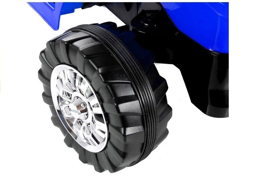 Niebieska koparka ZP1005 na akumulatorWiększość maluchów w dzieciństwie przechodzi fascynację różnego rodzaju pojazdami — jedni uwielbiają motory, inny samochody wyścigowe czy pojazdy budowlane. Mamy coś dla każdego z nich! Prezentujemy niebieską koparkę z ruchomą łyżką, która z pewnością wywoła uśmiech na twarzy dziecka. Koparka ta posiada akumulator oraz silniki, dzięki czemu przeniesie malucha w zupełnie inny wymiar zabawy.Dziecięcy traktor ZP1005 w niebieskim kolorze wygląda dokładnie tak, jak jego pełnowymiarowy odpowiednik — z tą różnicą, że przeznaczony jest dla wszystkich kilkulatków. W jego konstrukcji znajduje się między innymi czarny fotel o wymiarach 25 cm x 18 cm, ruchoma, pojemna łyżka o szerokości 37,5 cm, którą obsługuje się manualnie za pomocą dwóch drążków, a także imitacja oświetlenia na pałąku znajdującym się nad siedzeniem czy charakterystyczne detale w połyskującym, srebrnym kolorze w formie tłoka, osłony chłodnicy czy kołpaków. Całość ozdobiona jest typowymi dla maszyn rolniczych i budowlanych naklejkami z motywem żółto-czarnych pasów ostrzegawczych, a także napisem „POWER”, podkreślających siłę i moc koparki ZP1005.Wewnątrz maszyny dla malucha umieszczono obrotową kierownicę z klaksonem i przyciskiem aktywującym energiczne melodie, której wielkość dostosowano do rączek małych dzieci, przycisk START/STOP, obrotowy regulator poziomu głośności pracy silnika, a także drążek do zmiany kierunku jazdy (przód, stop, tył) oraz pedał gazu. Ciekawym dodatkiem jest czarny krążek umieszczony w przedniej części koparki ZP1005, który mieni się wszystkimi kolorami tęczy dzięki zastosowaniu w jego budowie światełek LED, a także wejście na mini jack, pozwalające na podłączenie odtwarzacza MP3 do autka.Niebieski traktor ZP1005 dla dzieci został wykonany z atestowanego, trwałego materiału, który pozwoli maluchowi na częste zabawy. Jego konstrukcja oparta jest na szerokich, bieżnikowanych kołach z plastiku, na których znajduje się specjalna opaska. Dzięki niej pojazd nie wytwarza dużego hałasu podczas jazdy, a ponadto poradzi sobie — jak to maszyna do zadań specjalnych — na nawierzchni różnego typu. Prędkość, jaką może osiągnąć koparka dla kilkulatków, mieści się w granicach od 3 do 5 km/h, co jest gwarancją rozrywki na najwyższym poziomie. Obsługa pojazdu jest bardzo prosta — wystarczy, że mały kierowca po wygodnym usadowieniu się na fotelu wciśnie czerwony guzik startu, a swoją nóżkę ustawi na pedale gazu. Po jego dociśnięciu niebieski traktor na akumulator ruszy przed siebie — zabawa gwarantowana.Jeśli maluch natrafi na górkę usypaną z piasku, którą chciałby przenieść na swój teren budowy, nie ma żadnych przeszkód — by podnieść lub opuścić ramię, należy użyć lewego drążka, natomiast by nabrać materiał lub opróżnić z niego czerpak, należy użyć drążka umieszczonego po prawej stronie. Sami przyznajcie, że jest to bardzo proste. Jeśli jednak to Wy wolicie przejąć kontrolę nad pojazdem, mamy na to rozwiązanie. Wraz z pojazdem w zestawie znajduje się innowacyjny pilot 2.4G, który pozwala na nadawanie i zmianę kierunku oraz prędkości jazdy, a także awaryjne zatrzymanie koparki.Dziecięcy pojazd budowlany zasilany jest akumulatorem 12V7Ah, a także podwójnym silnikiem o mocy 45W każdy. Według zaleceń producenta przeznaczony jest on dla wszystkich maluchów, które osiągnęły 3. rok życia — jednym ograniczeniem jest maksymalne obciążenie pojazdu wynoszące 30 kg. Niebieska koparka na akumulator posiada certyfikat CE, gwarantujący spełnienie wszelkich wymogów obowiązującej dyrektywy Unii Europejskiej. Maszyna zapakowana jest w oryginalny karton, wewnątrz którego dodatkowo znajduje się akumulator, ładowarka, pilot i instrukcja ułatwiająca samodzielny montaż.