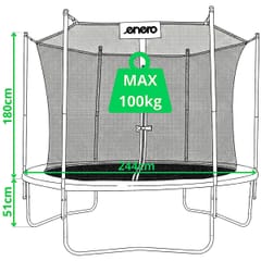 TRAMPOLINA BATUTA OGRODOWA SKŁADANA Z SIATKĄ WEWNĘTRZNĄ 8FT 244CM ENERO to idealny sprzęt dla każdego. Zapewnieni wiele uciechy i radości zarówno małym jak i dużym dzieciom. Wesołe podskoki zagwarantują dobrą zabawę oraz sporą dawkę ruchu i to na świeżym powietrzu!