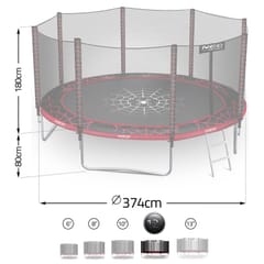 - trampolina 374 cm (12 ft) na 4 podwójnych nogach,
