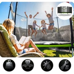- Szybkoschnąca powierzchnia – Wykonana z nowoczesnych materiałów powierzchnia nie zatrzymuje wilgoci, dzięki czemu trampolina jest gotowa do użytku w krótkim czasie po deszczu.