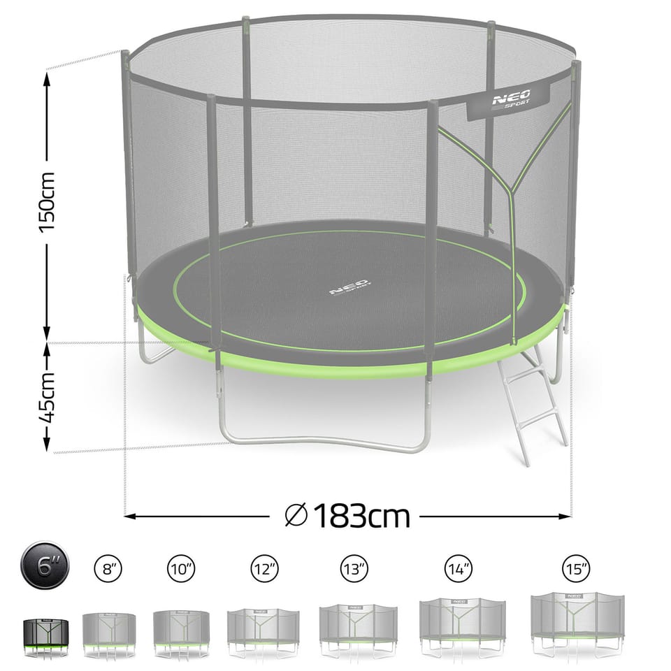 Trampolina Neo-Sport o imponującej średnicy 183 cm zapewnia mnóstwo miejsca do skakania – idealna dla dzieci i dorosłych!