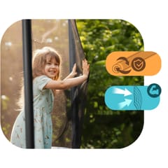 - Szybkoschnąca powierzchnia – wykonana z nowoczesnych materiałów powierzchnia nie zatrzymuje wilgoci, dzięki czemu trampolina jest gotowa do użytku w krótkim czasie po deszczu.