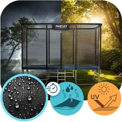 Stelaż trampoliny NEO-SPORT został wykonany ze stalowych rurek ocynkowanych, odpornych na korozję i zmienne warunki pogodowe.
