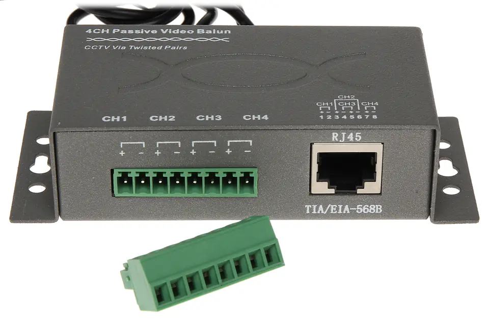 TR-4M przeznaczony jest do przesyłu sygnału wideo za pomocą skrętki komputerowejUrządzenie dopasowuje impedancję kabla koncentrycznego 75Ω do impedancji przewodu symetrycznego zapewniając przesył sygnału wizyjnego do 400m (skrętka komputerowa 5 kategorii) oraz eliminuje zakłócenia niesymetryczne
