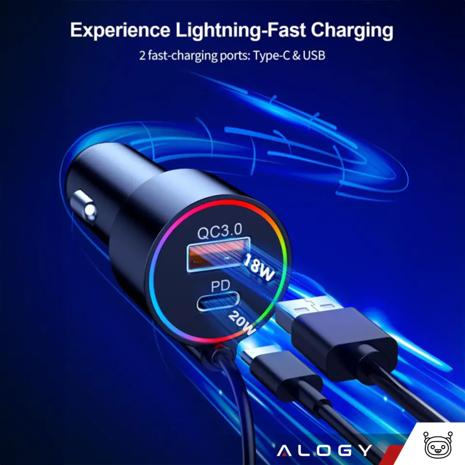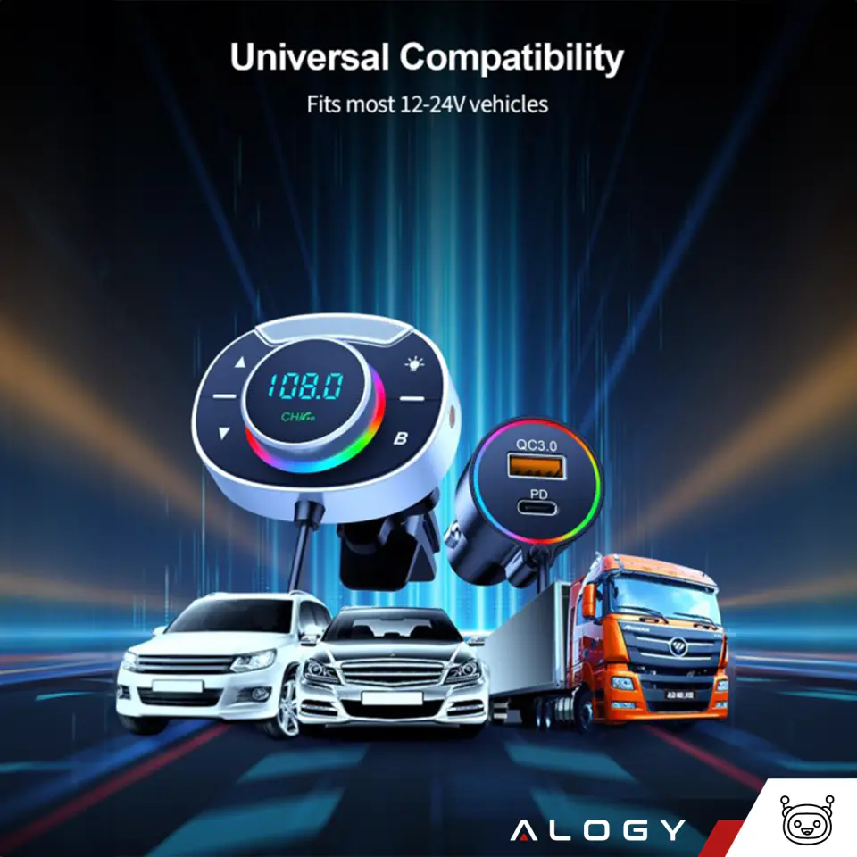 Transmiter Bluetooth Audio FM MP3 BT szybka ładowarka samochodowa USB QC 3.0 + USB-C typ C PD do auta Alogy