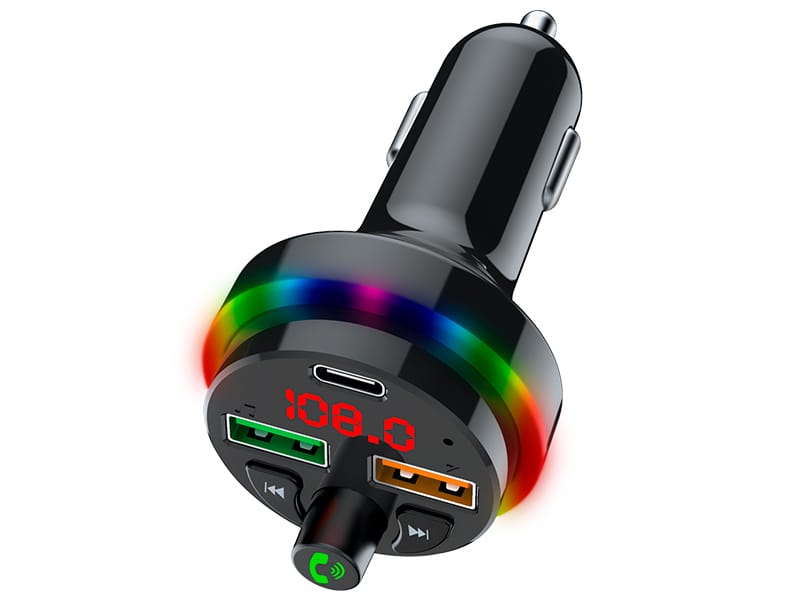 Tracer CarSynk – multimedialne centrum w Twoim aucie Połącz wygodę, bezpieczeństwo i rozrywkę w trakcie każdej podróży. Transmiter FM Tracer CarSynk z Bluetooth 5.3 zamieni Twój samochód w nowoczesne centrum muzyczne, a przy tym pozwoli szybko ładować urządzenia mobilne i prowadzić rozmowy głośnomówiące. Szybkie ładowanie wielu urządzeń CarSynk oferuje port USB-C o mocy 25W z technologią szybkiego ładowania oraz dwa dodatkowe porty USB-A (5V/3.1A). Dzięki temu w tym samym czasie możesz doładować telefon, tablet i inne akcesoria – idealne rozwiązanie podczas dłuższych tras. Przejrzysty ekran LED Wbudowany ekran LED pokazuje częstotliwość FM, numer odtwarzanego utworu i inne informacje o stanie pracy urządzenia. Dzięki czytelnemu podświetleniu łatwo kontrolujesz ustawienia nawet nocą. Pełna kontrola nad muzyką Na obudowie transmitera znajdziesz praktyczne przyciski sterujące – pozwalają na odtwarzanie/pauzę, zmianę utworów (poprzedni/następny) oraz regulację głośności przez przytrzymanie. Dwukrotne naciśnięcie przycisku wyświetla aktualne napięcie akumulatora. Wszystko masz pod ręką, bez sięgania po telefon Dodatkowe możliwości: - Czytnik kart micro SD i port USB pozwalają odtwarzać muzykę bezpośrednio z nośnika. - Podświetlenie RGB tworzy nowoczesny efekt wizualny i ułatwia korzystanie po zmroku. - Funkcja głośnomówiąca zapewnia bezpieczne rozmowy telefoniczne w podróży.