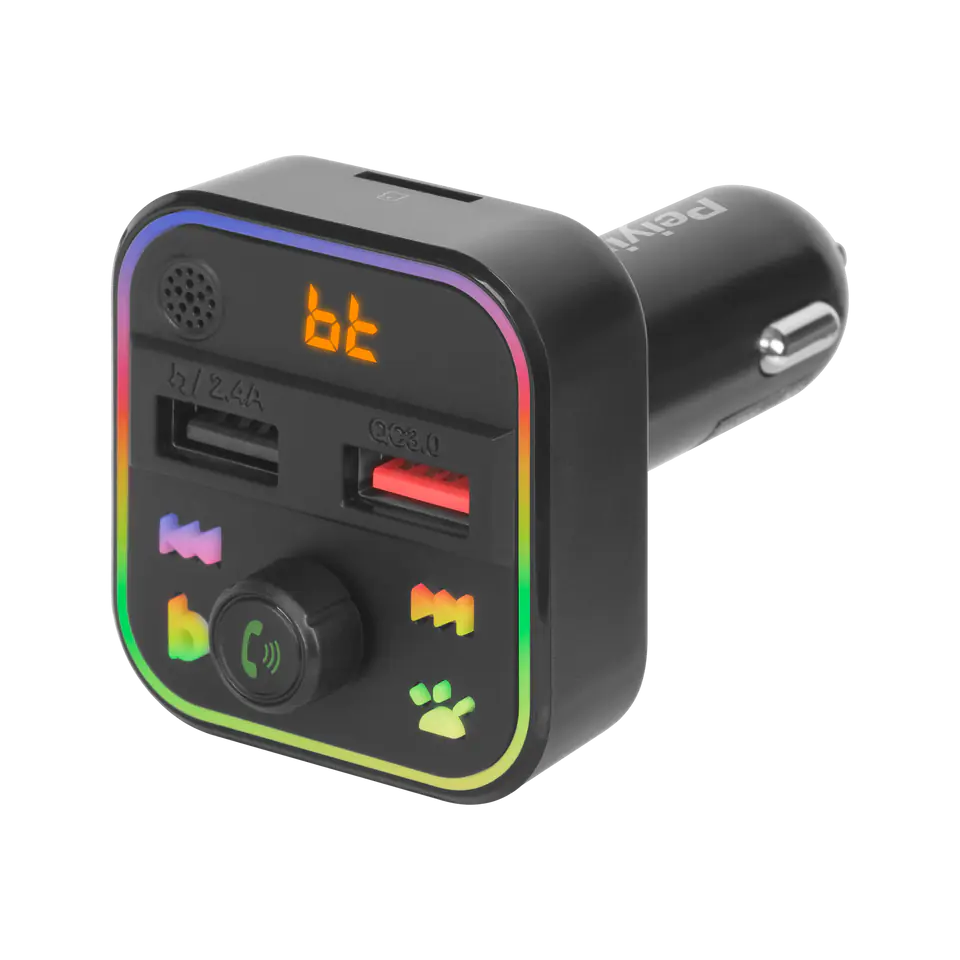 Wyświetlacz LED: 0,85”Wbudowany mikrofonObsługa połączeń głosowychFunkcja BASSMiernik napięciaMateriał: ABSBluetooth 5.3Zasięg Bluetooth: do 7 mProfile Bluetooth: AVRCP, HFP, A2DPFormat audio: MP3, WAV, WMAZakres częstotliwości: 87,6 – 107,9 MHzStabilność częstotliwości: ±10 ppm2x port USB:• USB-A – 5 V / 2,4 A (ładowanie i odtwarzanie muzyki)• USB-A Quick Charge – 5 V / 3 A (ładowanie)Slot na kartę microSD (maks. 64 GB)Zasilanie: 12 – 24 VWaga: 43,3 gWymiary: 83,6 x 48,5 x 45,6 mm