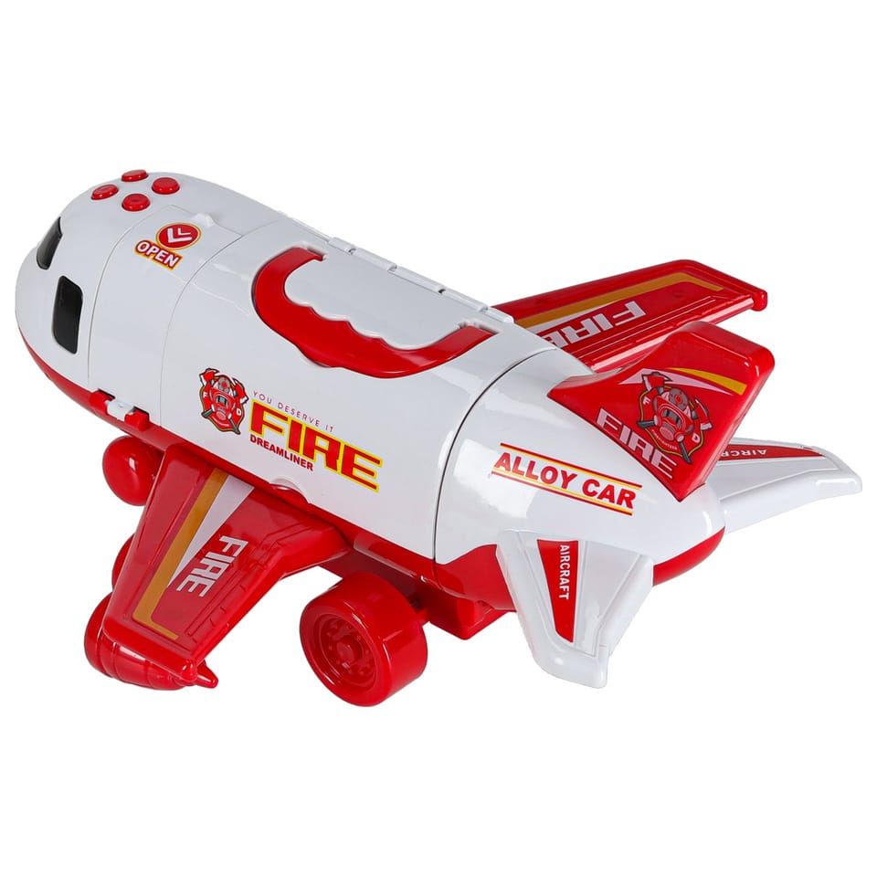 Samolot jest otwierany również od boku, by móc łatwiej manewrować zabawkami wewnątrz.
