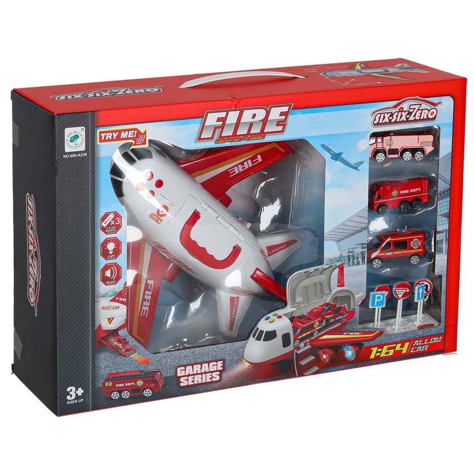 W zestawie również komplet 7 znaków drogowych. Wszystkie elementy dodatkowe mieszczą się wewnątrz samolotu.
