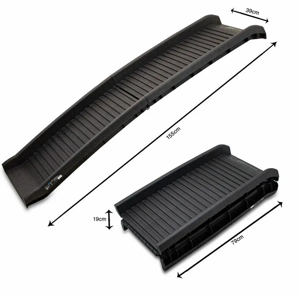 Antypoślizgowa powłoka ,którą pokryta jest rampa zapewnia idealną przyczepność a wzmocniona konstrukcja rampy stabilność.Dzięki możliwości złożenia na pół można ją bez problemu przewozić w samochodzie , waga jedyne 5 kg zapewnia bezproblemowość w transporcie samej rampy.