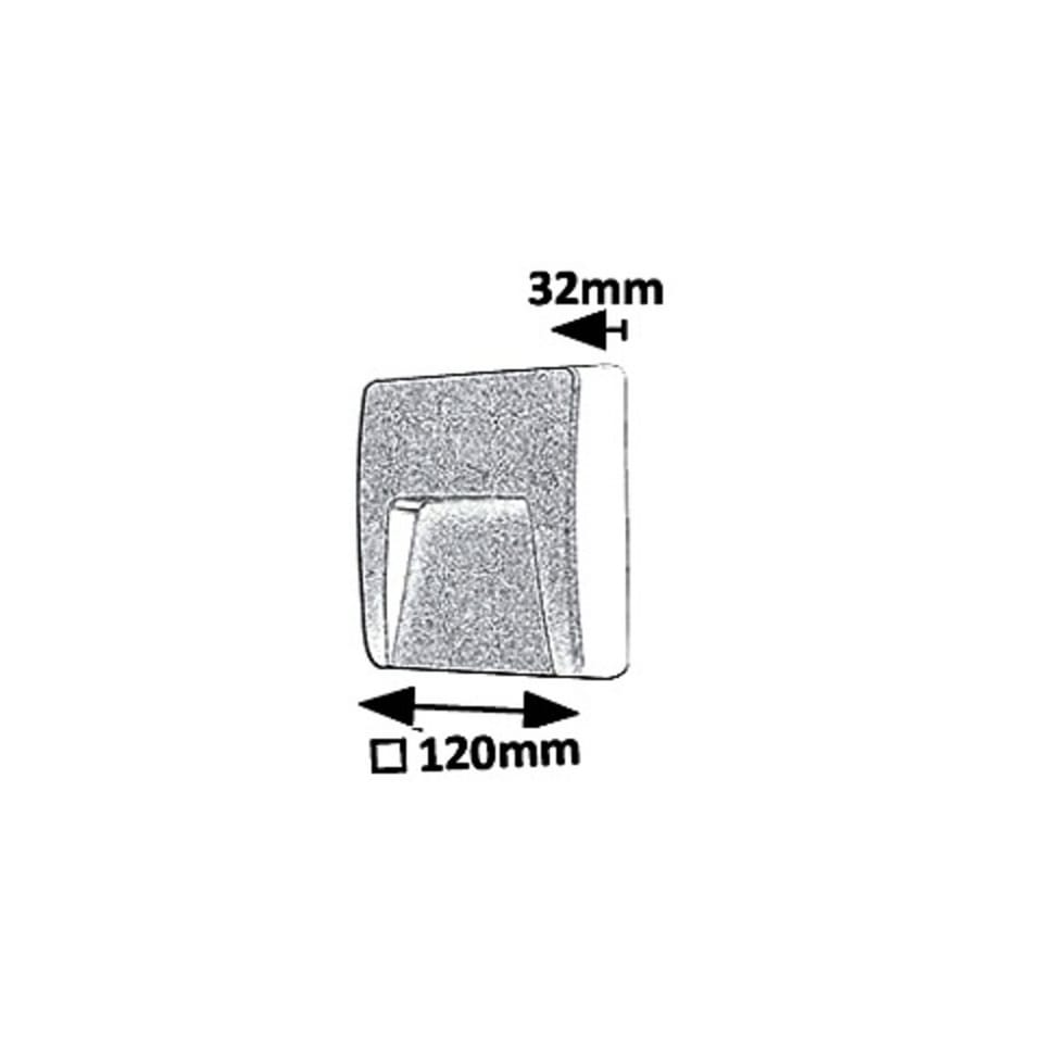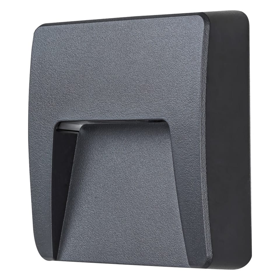 Specyfikacja- Kategoria produktu: lampa ogrodowa- Typ: zewnętrzna lampa ścienna- Pomieszczenie: taras, ogród, ściana zewnętrzna- Temperatura barwowa: naturalna biel- Strumień świetlny źródła światła: 100lm- Moc źródła światła: 3W- Technologia LED: tak- Stopień ochrony: IP65- Kolor lampy: antracyt- Materiał lampy: tworzywo sztuczne- Żywotność źródła światła: 20000 godzin- Stosowane napięcie: 230V, 50Hz- Odległość od ściany: 32.0 mm- Wysokość: 120.0 mm- Szerokość: 120.0 mm- Waga brutto: 0.22 kg- Barwa światła: 4000 K- Klasa ochronności: II